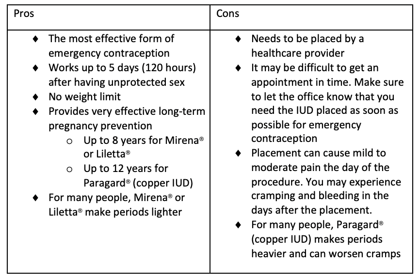 - Kyleena® IUD is not effective as emergency contraception– only Mirena®, Liletta®, and Paragard® IUDs are.